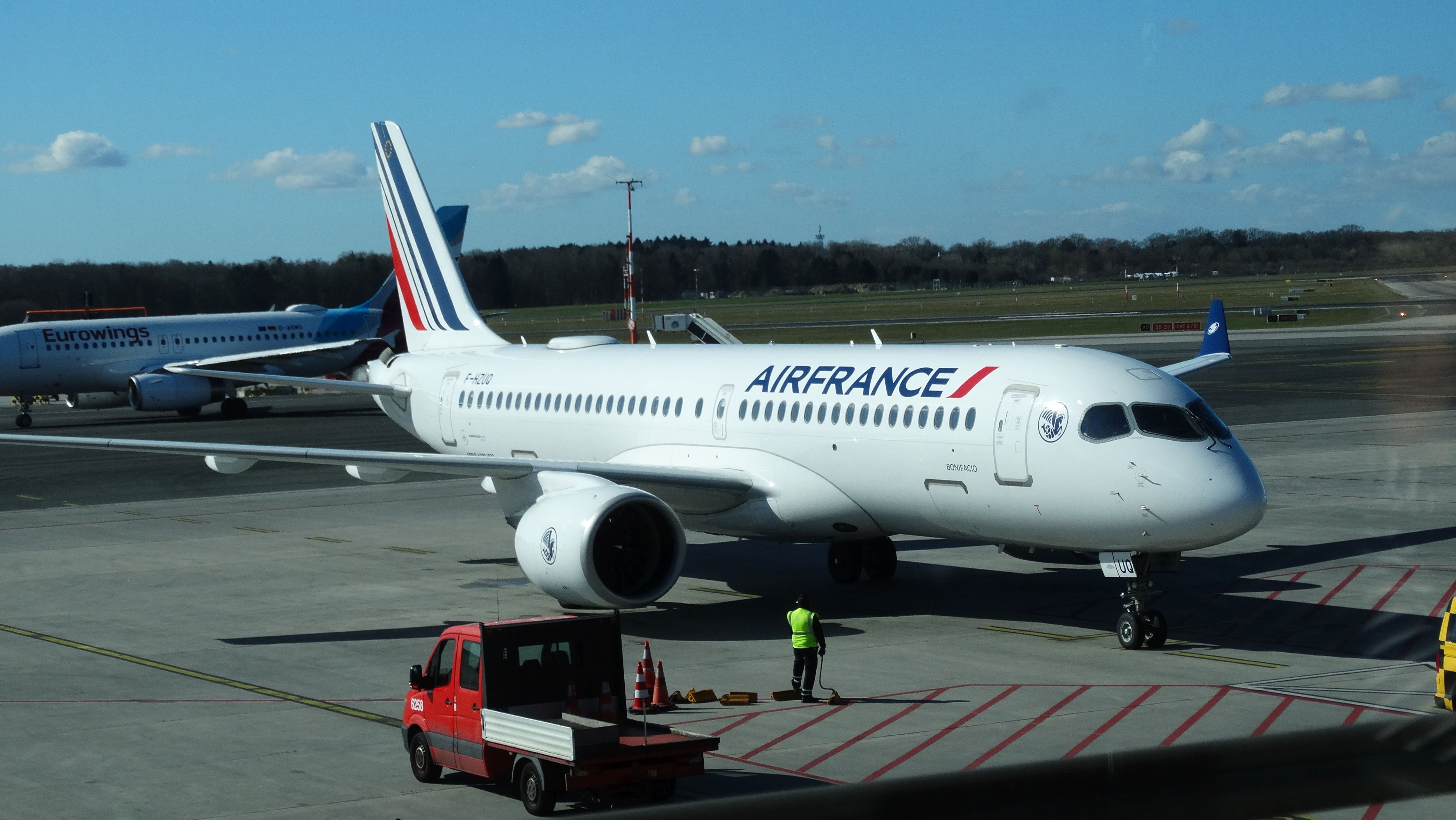 Air France's Airbus 220 F-HZUQ named "Bonifacio" is a leased machine which was taken in use as new in March 2023.
